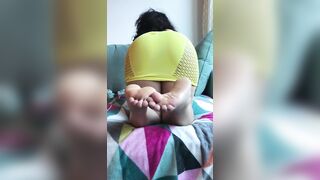 Egypt mom in a yellow dress flashes her XXX body parts on the bed