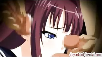 This hentai anime cartoon will make your dick explode with excitement! The busty chick is so hungry for cock, she can't even wait to take off her clothes. She sucks on multiple dicks like a champ, and her big tits are just begging for more. This is the ultimate blowjob fantasy come to life! Get ready to jerk off to this hot hentai action!