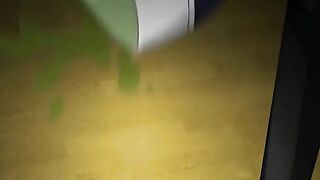 Sexy busty milf in hentai video enjoys a drink with young guy before fucking him.