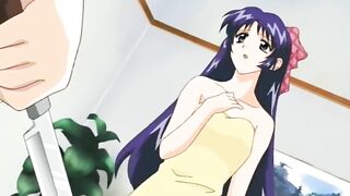 Blackmailing busty schoolgirls getting doggy-fucked in a bathroom. #Hentai