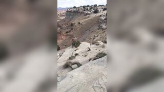 During walk with dog brunette shows perky tits and XXX bubble butt