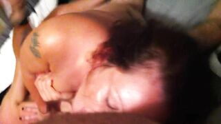 Amateur Brunette MILF Enjoys Hot Group Sex in Homemade Threesome Gangbang