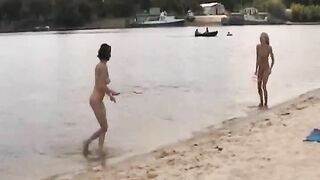 Nude Russian Beach Girls Playing Obscenely On The Sand Beach