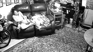 A curious daughter, home alone, decides to watch some porn on the living room couch. As she gets aroused, she starts rubbing her wet pussy, moaning with pleasure. Unbeknownst to her, her dad has set up a hidden cam, which captures every moment of her naughty act. The dad is shocked when he reviews the footage, discovering his daughter's secret masturbation session, now exposed in this scandalous video.