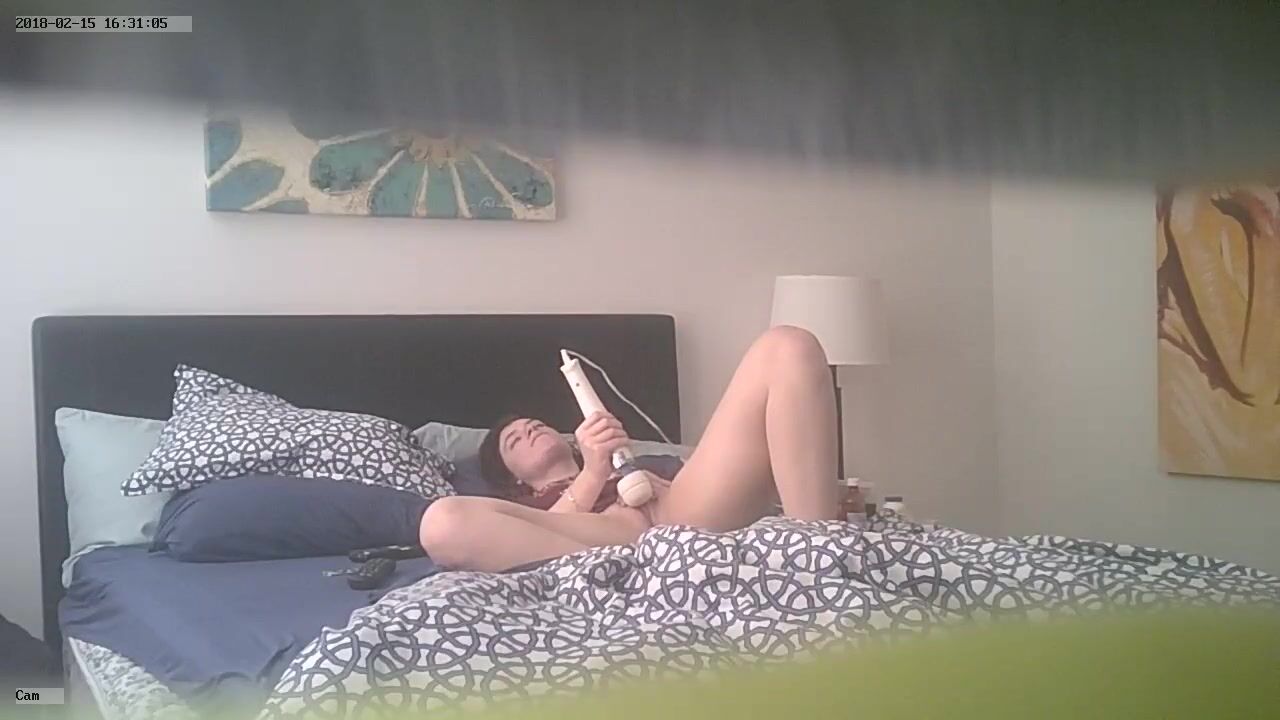 Bedroom door closes, and she's on a mission: hand-held massager in grip, clothes stay on. Hidden lens records her zoning in on that sweet spot between her legs, inducing repeated orgasms, highlighted by her hips thrusting back in the throes of the fiercest climax.